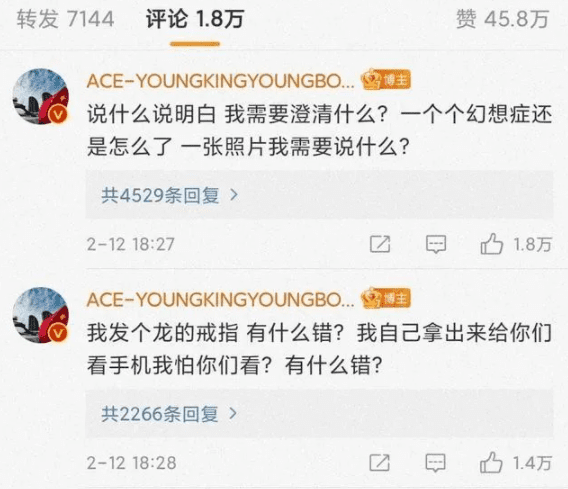 他评论区愤怒回应,指责有些人是“幻想症”,并称自己没有需要澄清的事情。
