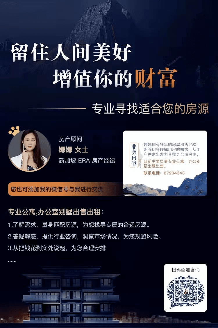 特约新加坡房地产顾问:李娜,毕业于新加坡,专注房地产投资多年,善长数据分析和投资。我乐意为您分享更多新加坡房地产投资经验和心得。目前就职于新加坡最大的房产公司ERA 的市场营销董事一职,对房地产事业非常热爱,了解和熟悉新加坡房地产的销售和交易流程,交易过上千种买卖,深受顾客好评。