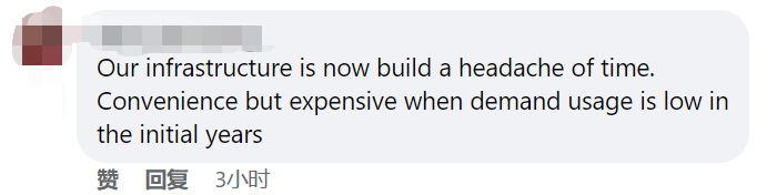 “我们(新加坡)现在的基础设施的建设时间相当令人头疼。方便是很方便,但也非常昂贵,特别是在最初几年,需求和使用率相对较低的时候”