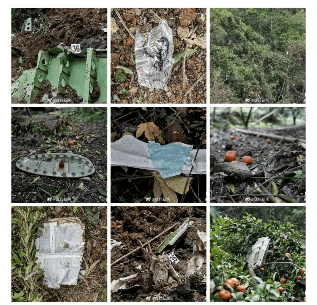 官方发布了一组“核心区”的照片,飞机残骸被依次编号。