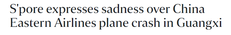 新加坡外交部声明中称注意到搜救行动正在进行中,支持中国的努力,并向航班上的乘客和机组人员的家属表示慰问。