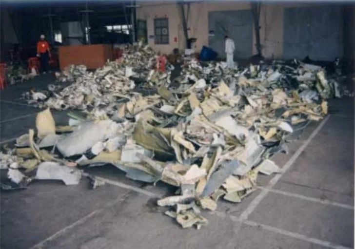 最后发现最大块的飞机残骸仅有40厘米,机上104人的遗骸都是残肢断体无法确认,一直最后仅有6人确认了身份……