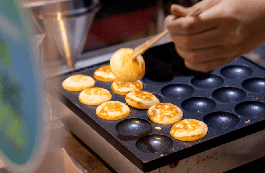 以荷兰小松饼Poffertjes闻名新加坡各大夜市摊!搭配上特制的奶昔,简直一绝!