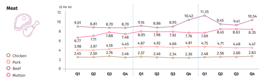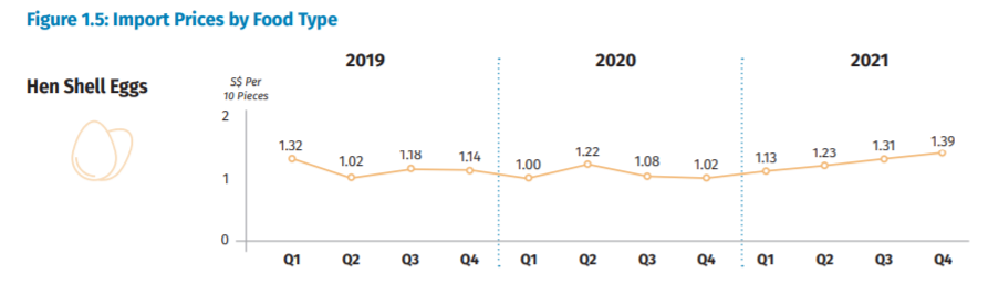 “2021年12月,10个鸡蛋只要2.1新币。现在,相同的鸡蛋要3块钱。不到5个月,价格涨了这么多!”
