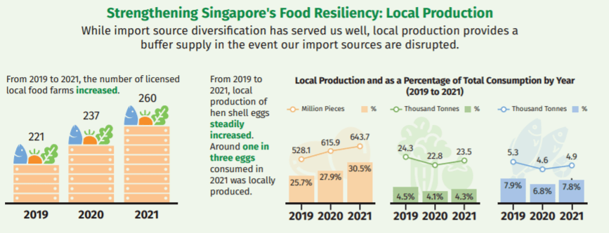 更为重要的是,在过去三年里,本地农场也为新加坡提供了一些食品供应,但是蛋类制品,就有30%是来自新加坡本土。