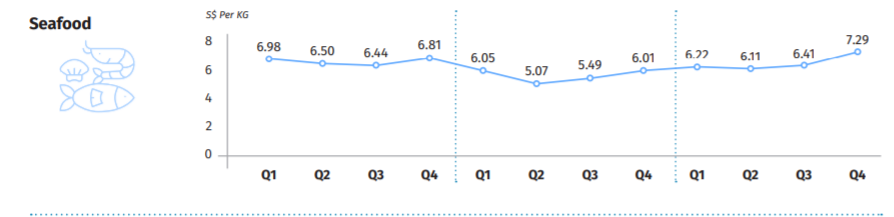 新加坡人喜欢吃的海鲜,在经历了2020年的价格重挫后迅速反弹,去年第四季度的每公斤7.29新币,是三年来的最高。