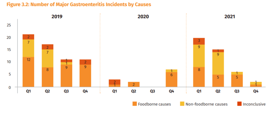 平均而言,新加坡食品局每年都要收到并调查超过17000起公众反馈案件,其中大部分与食品安全问题有关,例如肠胃炎事件、卫生场所肮脏和食品中发现异物等等。