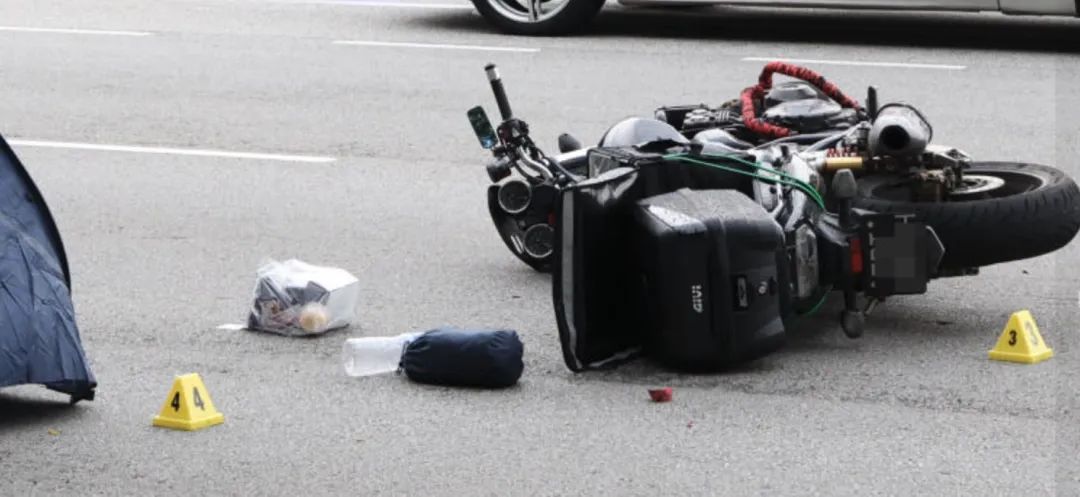 而后面撞上来的那个人,也开着摩托车,也是外卖小哥。