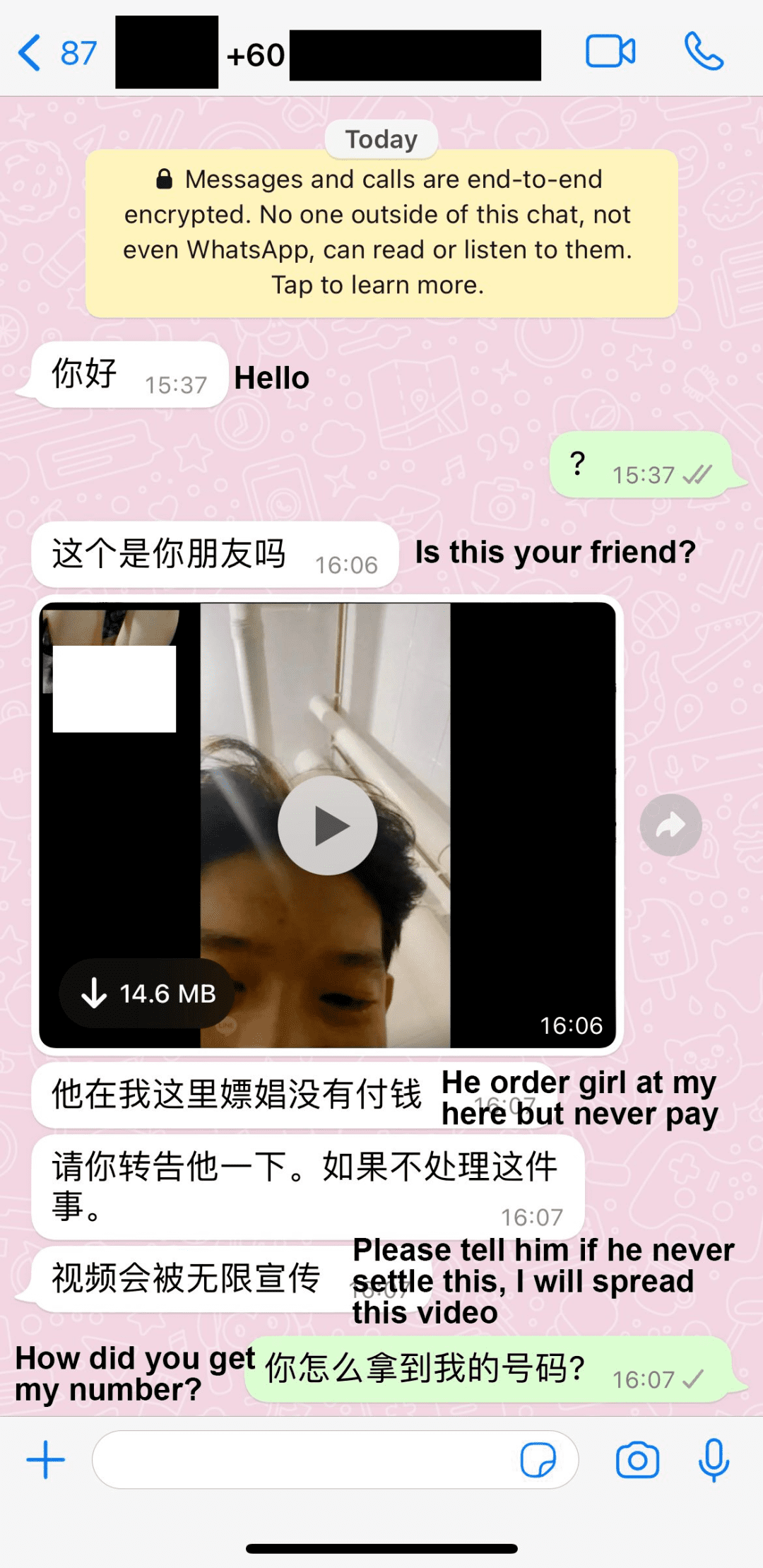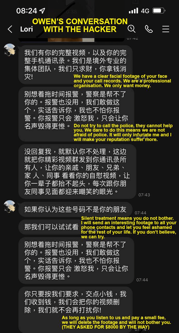 骗子还恫吓受害者不要报警,如果不按他们要求的转钱过去,就会将这则视频,发送给受害者的好友。