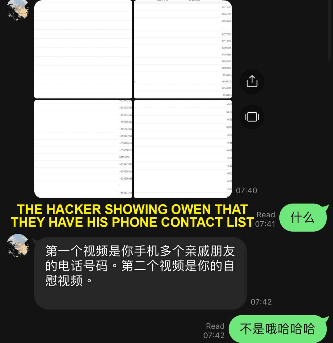 看受害者迟迟不就范,黑客似乎失去了耐心,他真的将这则视频发给了受害者通讯录里的人。