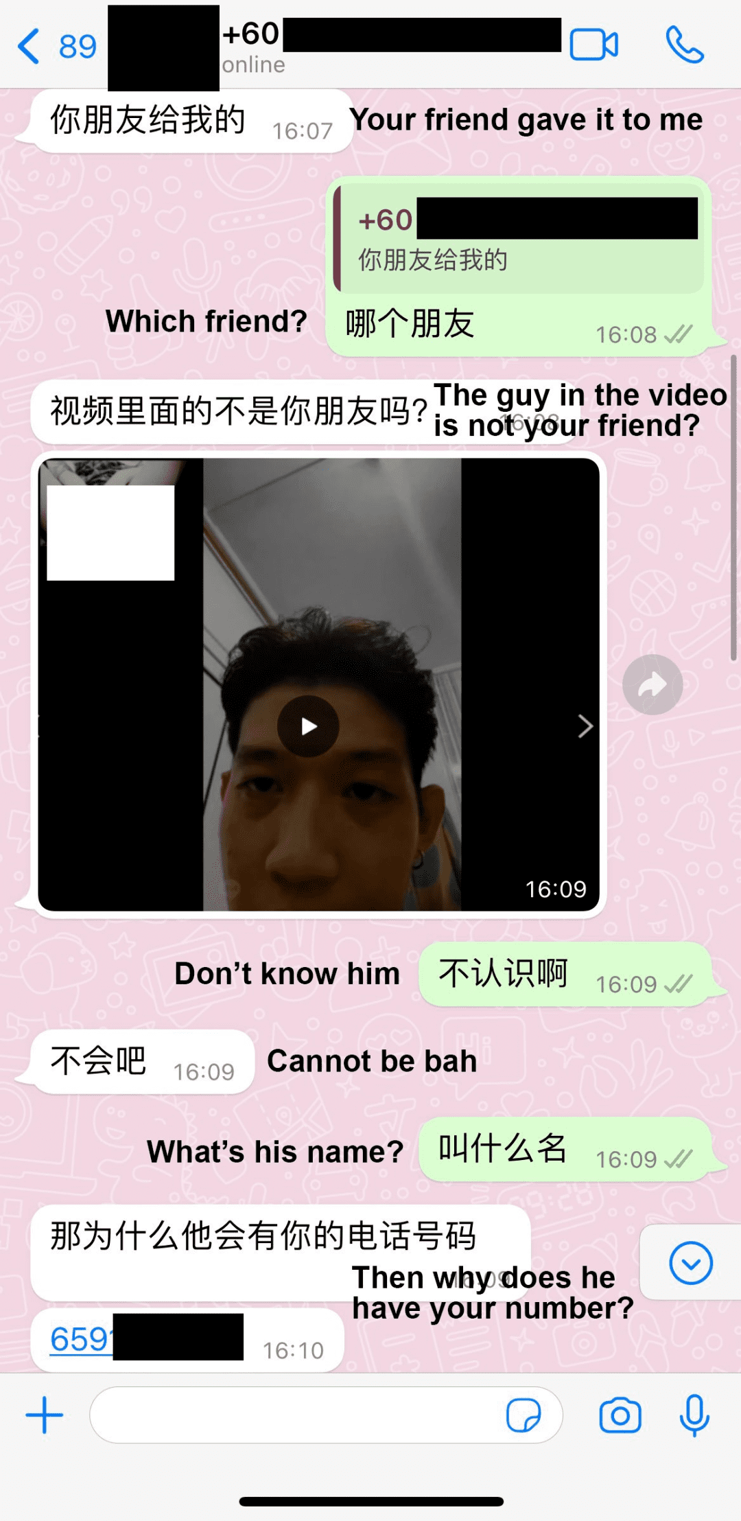 此后,骗子一直孜孜不倦地将这段色情视频发给受害者的通讯录好友。