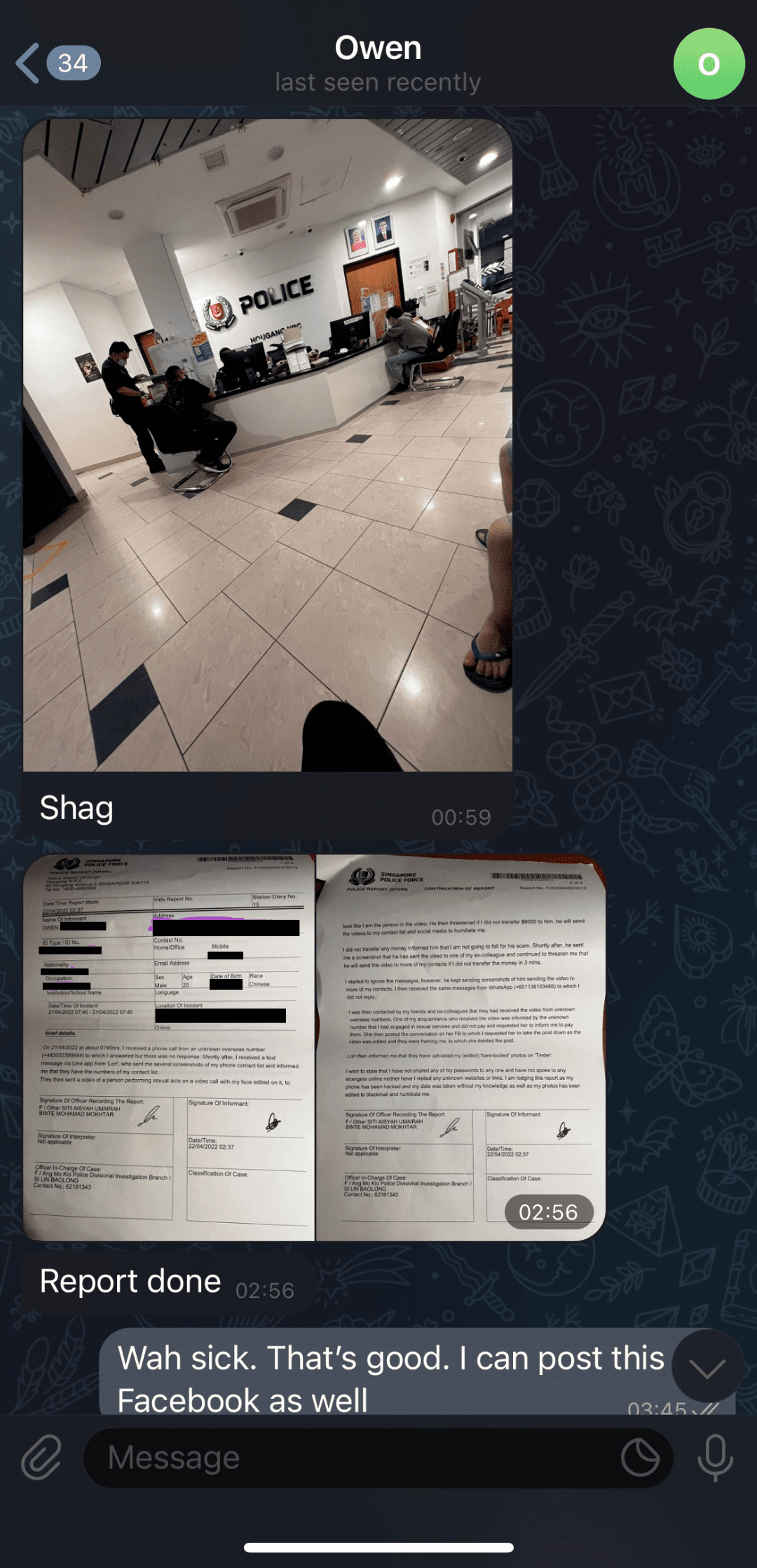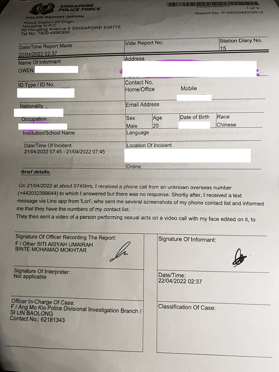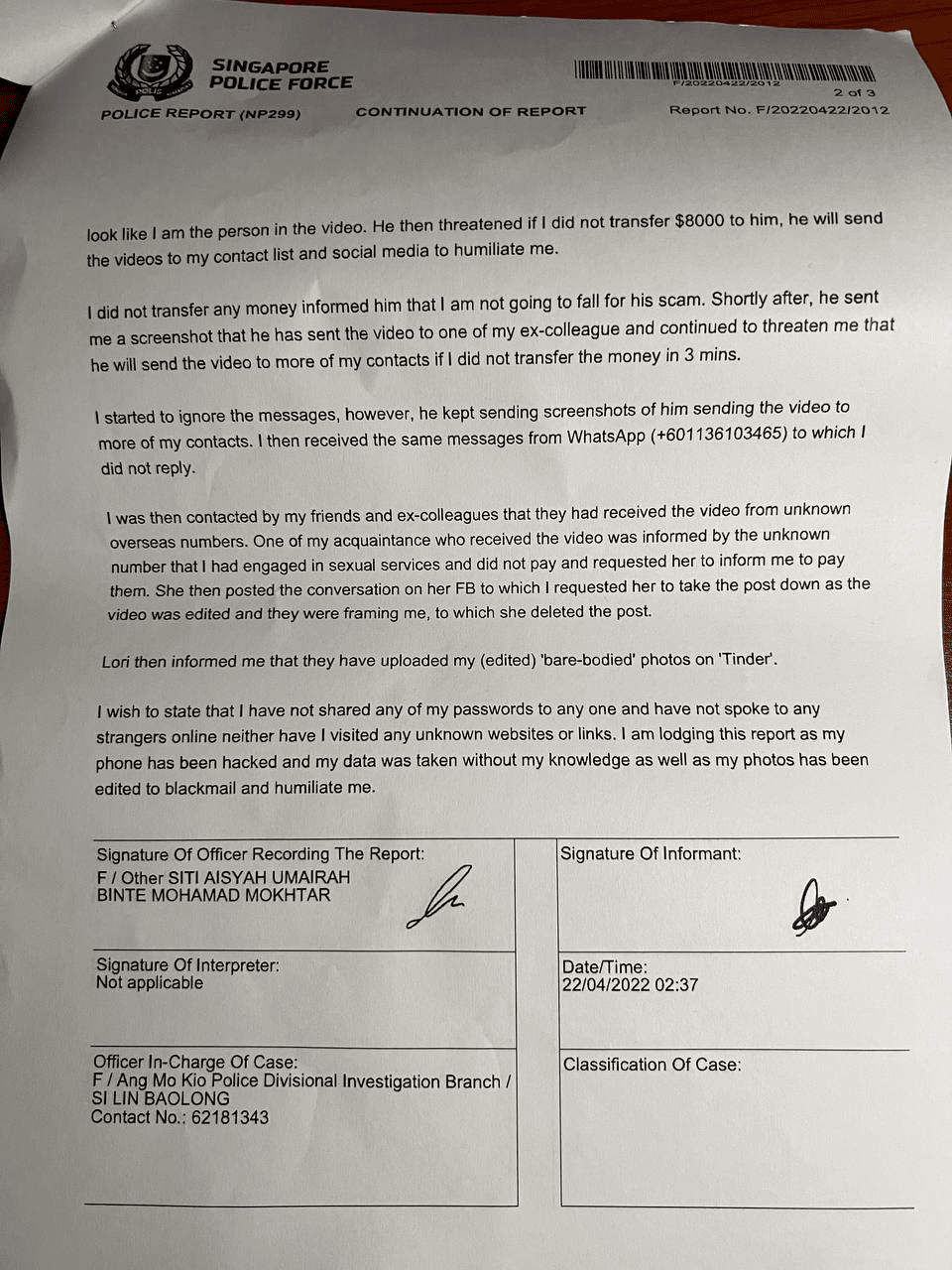 但这时候,受害者已经无视了骗子的任何“建议”。他及时向新加坡警方报警,并做了相关报告。