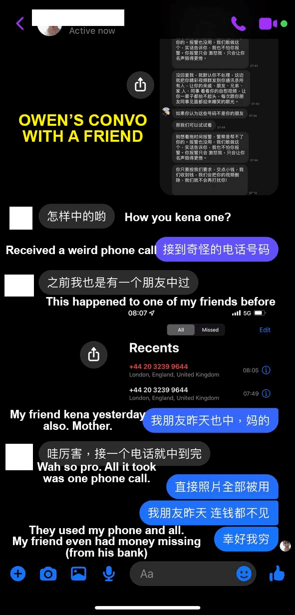 只不过,一个新型的诈骗+敲诈手法开始在新加坡出现。受害者只是接了一通电话,就被犯人盯上。