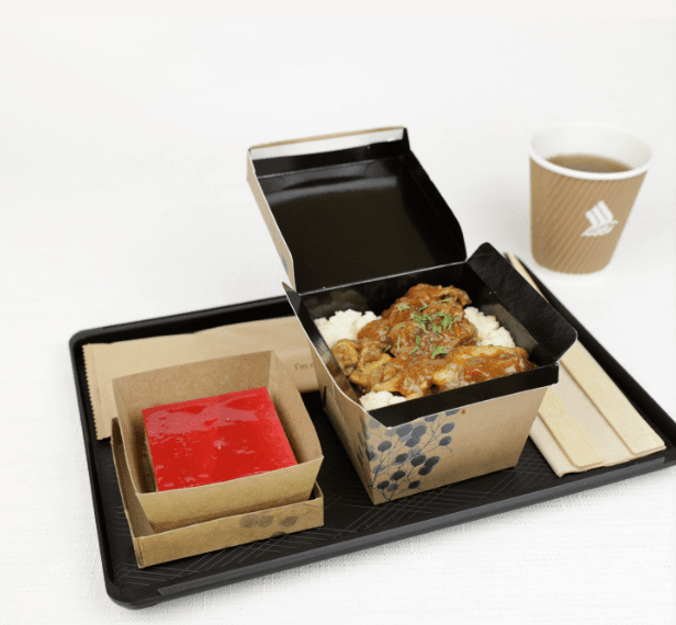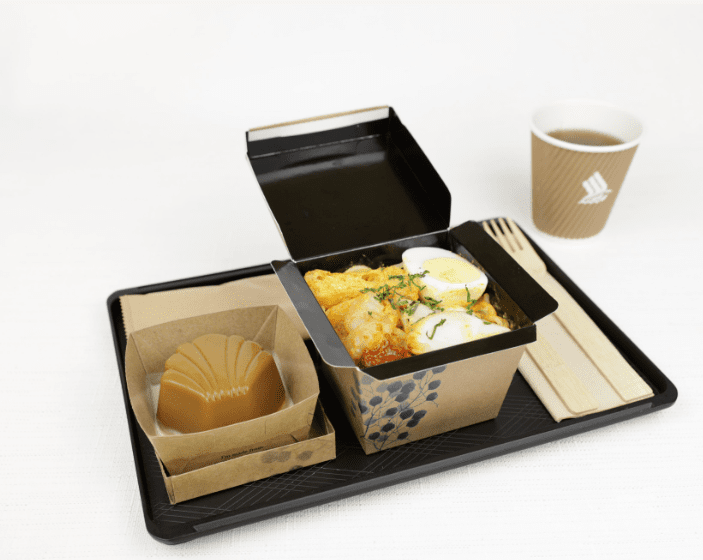 "新航在新的膳食概念中没有对食物的数量和质量作出妥协。我们把传统的餐盒换成了一个纸盒,可以容纳同样数量的食物,但更深。"