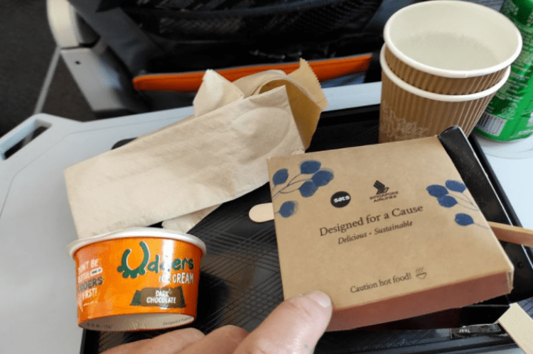有了这些容器,#SIA可以提供热汤、米饭、叻沙......许多令人兴奋的可能性。而当地的甜点也很不错。我吃了两个蛋糕 - pulut hitam和ondeh ondeh。”
