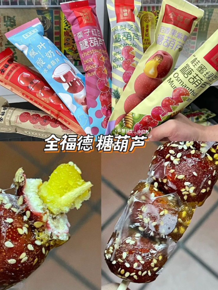 糖葫芦还是老字号的全福德,口碑和味道都杠杠的,而且坤海给大家提供的口味多到眼花缭乱,无论是自己吃还是和家人朋友分享都非常适合!
