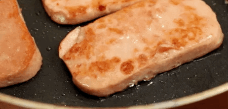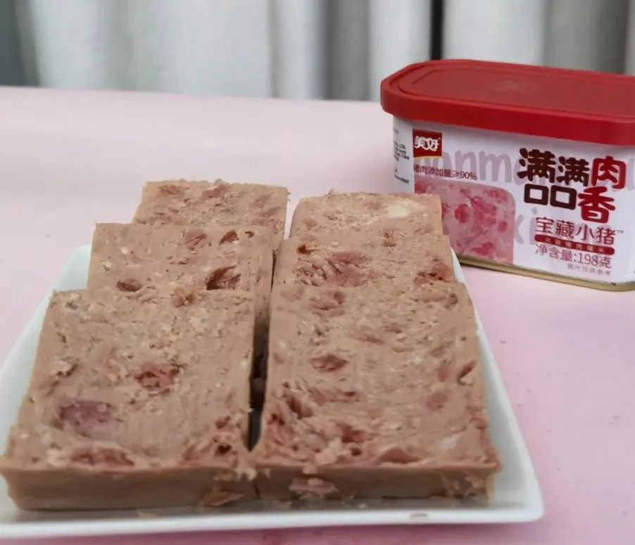 尤其是厚切油煎过后,浓郁的肉香混合着油脂香气,微微酥脆的外壳,内里柔软多汁,这样的午餐肉,怎么能不爱呢!