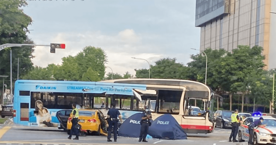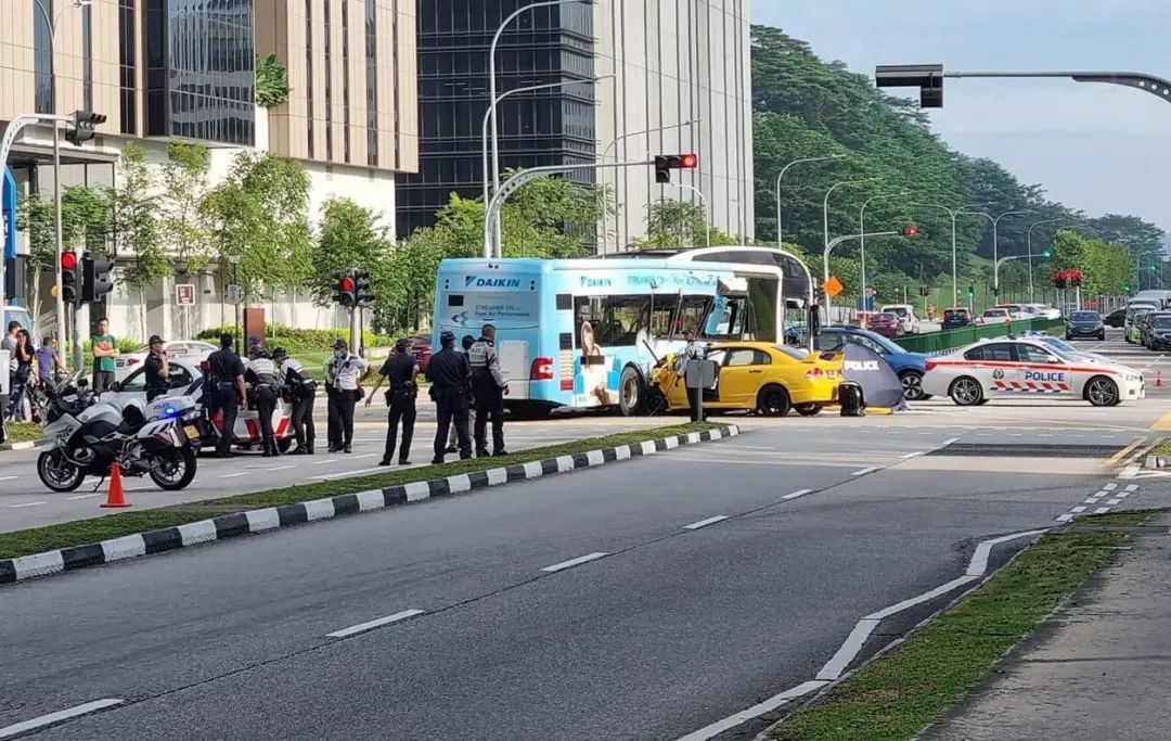一辆本田小轿车和巴士相撞,最终造成了2死8伤的惨剧。