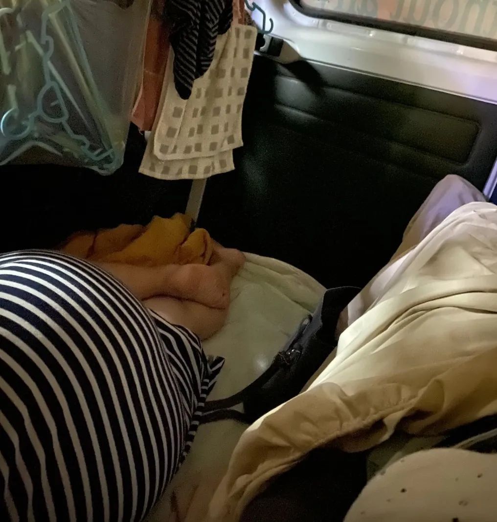 他的小货车里边内设是这样的,座椅下方就是床铺。↓