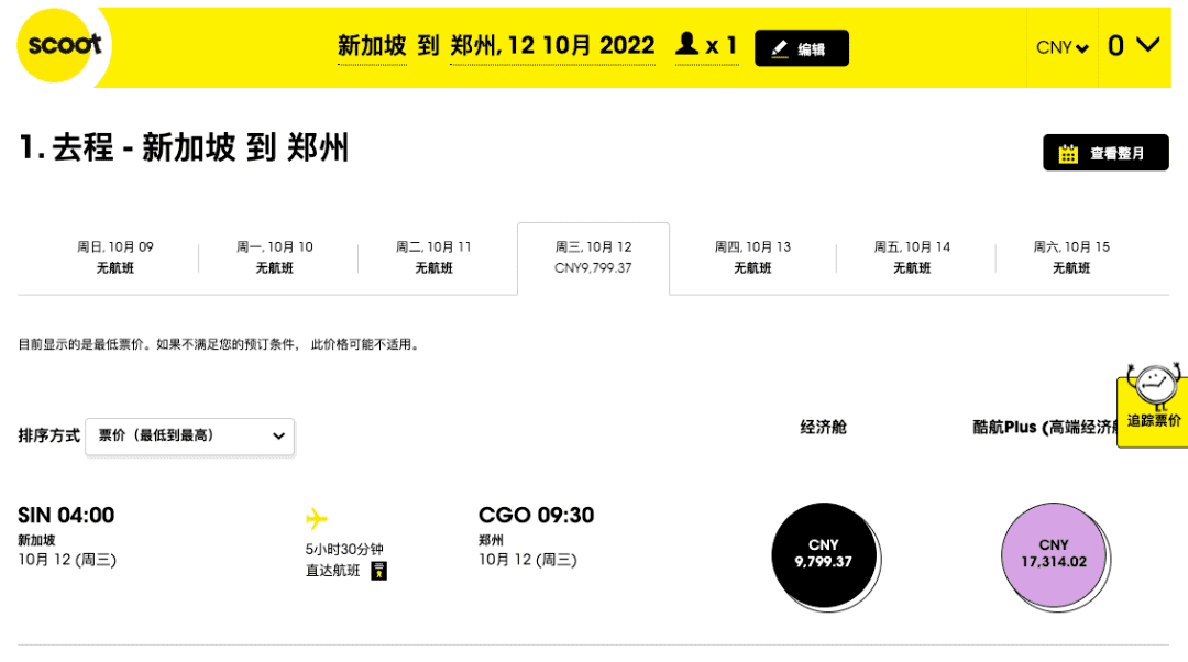 在有关部门支持下,10月12日起,酷航将恢复新加坡往返郑州的客运航班。具体航班时刻如下: