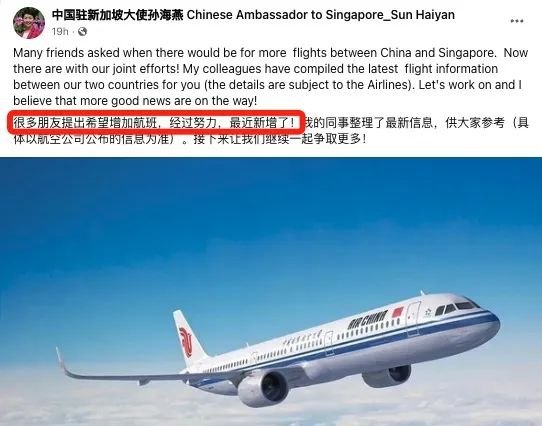 而这一消息,跟中国驻新加坡大使孙海燕女士于昨日发文想要表达的意思差不多。