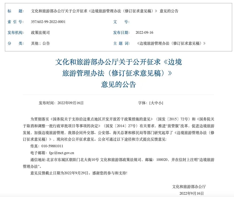 昨日,中国驻新加坡大使孙海燕女士也在脸书上发布了新动态。国内官方也正在征求意见,拟“鼓励边境地区打造具有特色的边境旅游目的地”。