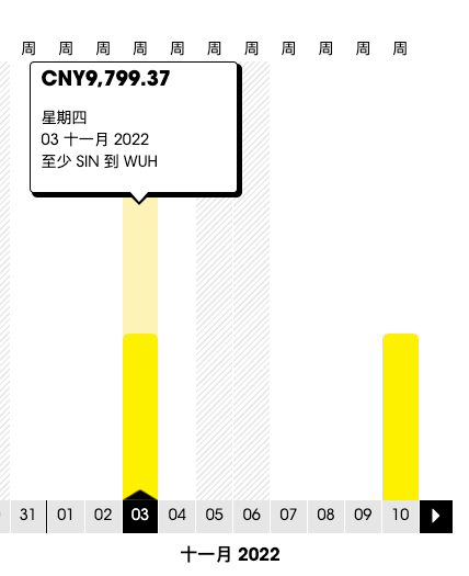 11月3、6、10、13、17、20、24、27日,,价格在¥14396-¥16605浮动。
