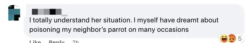 “鹦鹉叫起来是真的非常扰民。非常大声,那些养鸟的人真该替邻居想想。”