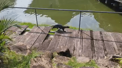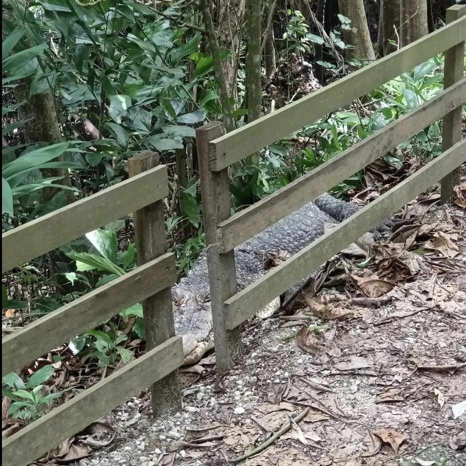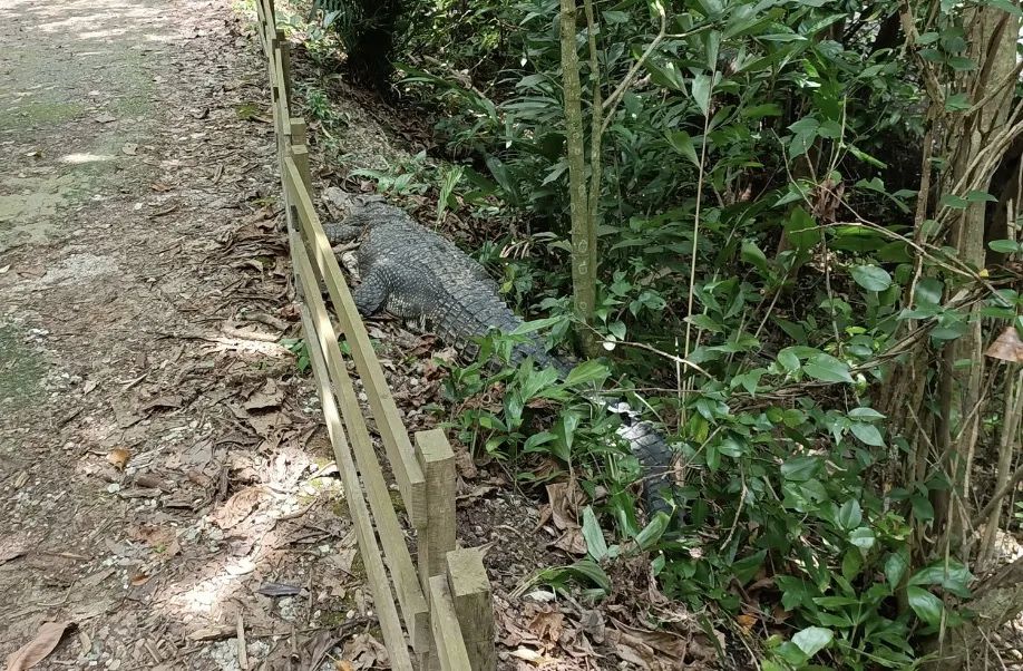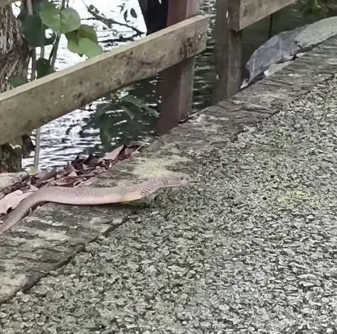林厝港的居民出门到水边散步,就碰到一条目测至少3米到4米长的大鳄鱼,在水中潜游。↓