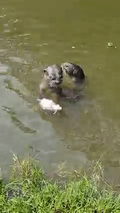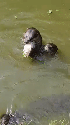 有人到公园散步时,就曾目睹到水獭一家在鱼塘开派对。