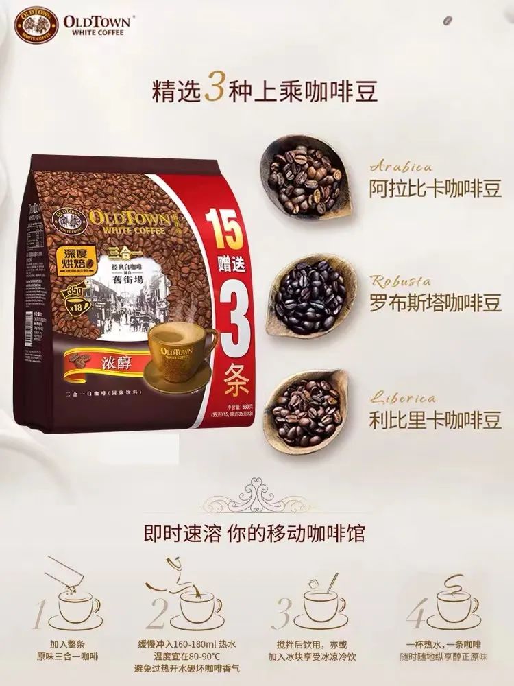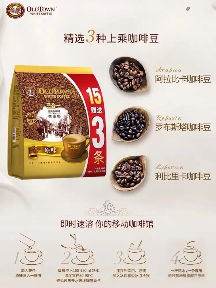 马来西亚 旧街场无蔗糖速溶白咖啡