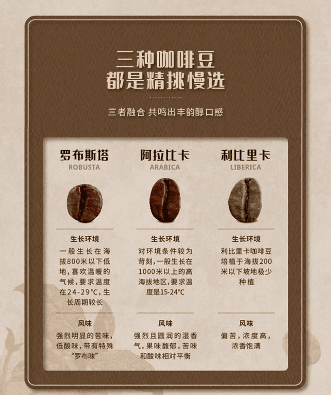 融合3种上等咖啡豆创造出