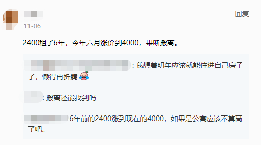 很多网友都在互相分享遭遇,涨租幅度有涨到4000新的,也有涨到5400新的......有点同病相怜的意味