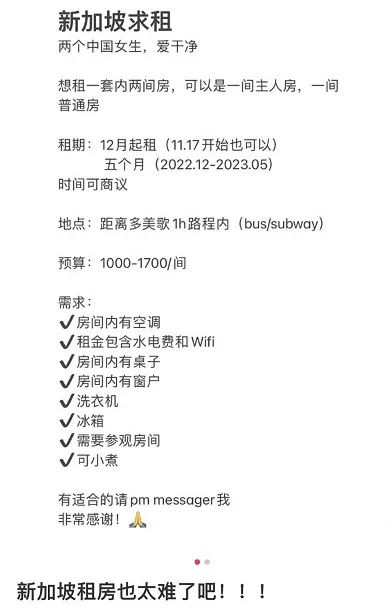 同样在新加坡租房的其他外籍人士,也纷纷在社交媒体发文感叹: