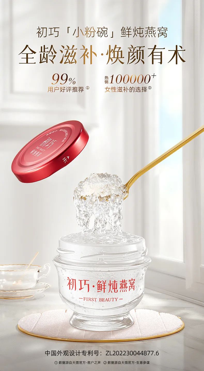 大家都知道,常吃燕窝,可滋补养颜、养阴润肺、增强免疫、消除疲劳、抗老延缓皮肤老化等等。初巧这款燕窝直选印尼、马来西亚认证的优质燕屋!限量采集,足足经过300天守候才成就一小瓶自然燕窝!且一瓶燕窝里只含水、燕窝、冰糖,很安全纯粹。还创新鲜炖工艺,想吃时从冰箱里拿出隔水加热,吃起来更舒口~全龄滋补,绝对的秋冬顶级营品!