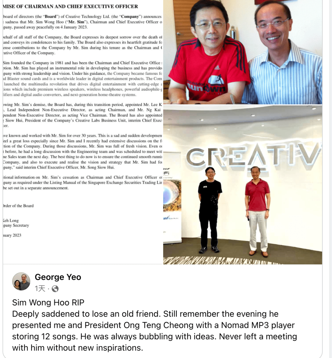 1月4日,新加坡知名科技创始人沈望傅(Sim Wong Hoo)去世,年终67岁。各大媒体纷纷报道,追忆他一生为新加坡本地电脑声音科技作出的杰出贡献。
