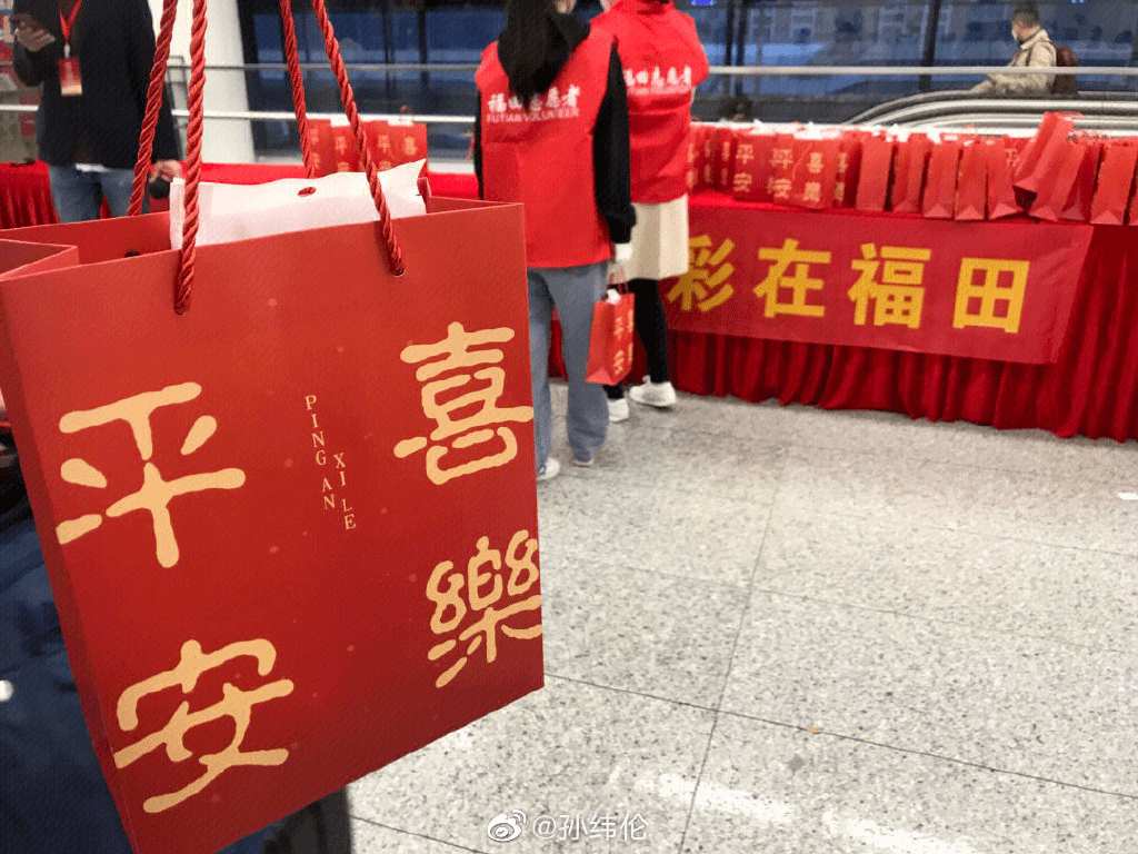 所有通关进入福田口岸的人,也都收到了由工作人员准备的新春福袋。
