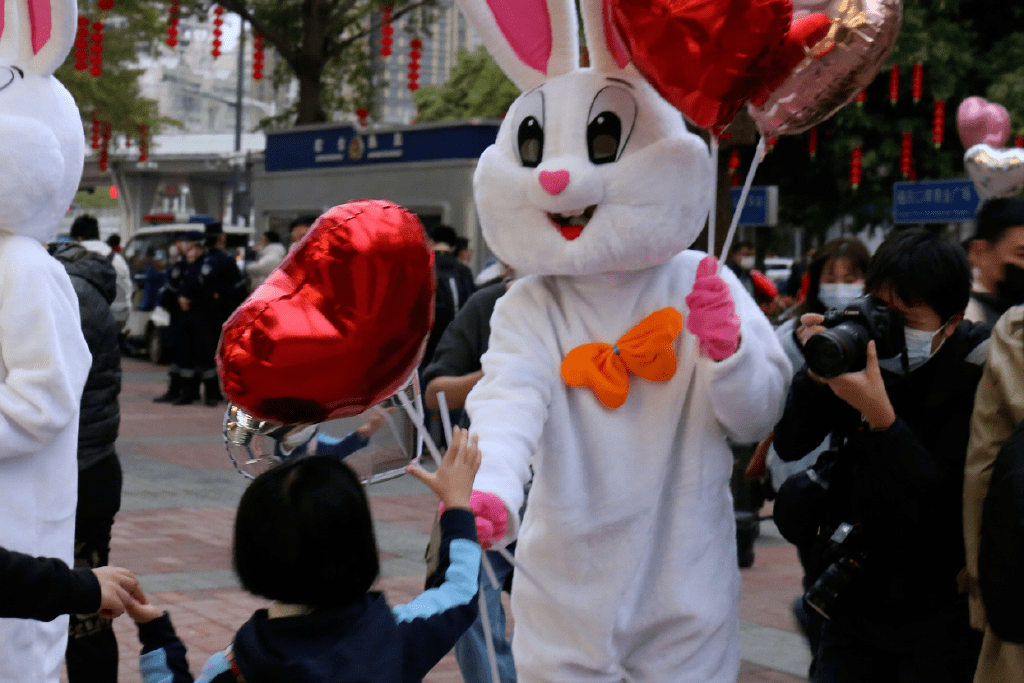 现场还有“大白兔”给通关的人送上小礼物。虽然只是个小玩意,但是收到的小孩子显然很开心。