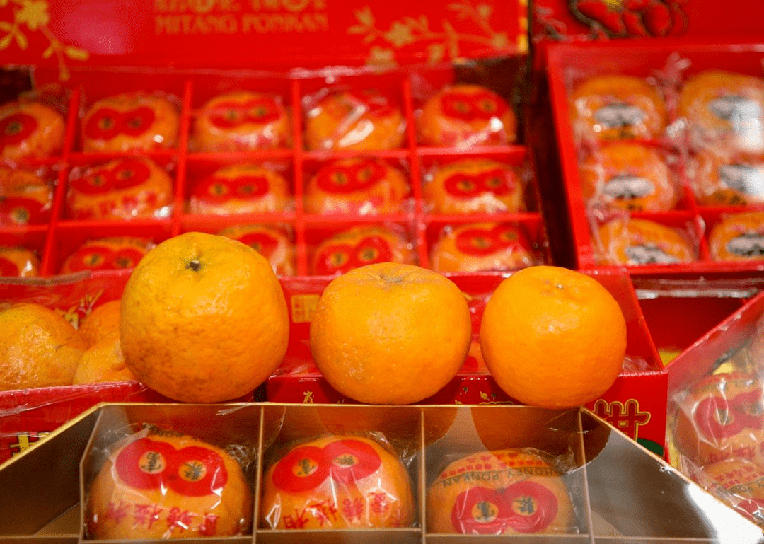 不同于中国拜年时,很多人都要提着大包小包礼品上门.新加坡式的拜年,往往都只需要他们带上两粒柑橘就好。