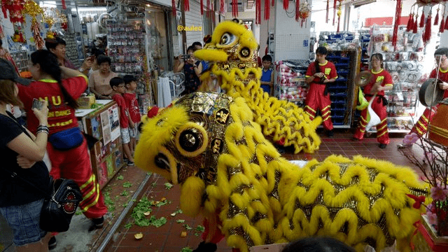 在中国,这种传统的舞龙舞狮逐渐没那么流行了,但在新加坡,每年过年还是可以看到不少舞狮。