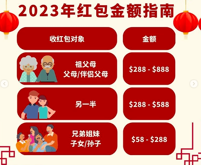 也有新加坡本地媒体给出了一份“2023年新加坡红包行情”。具体有多少人跟着这个走就很难说了~