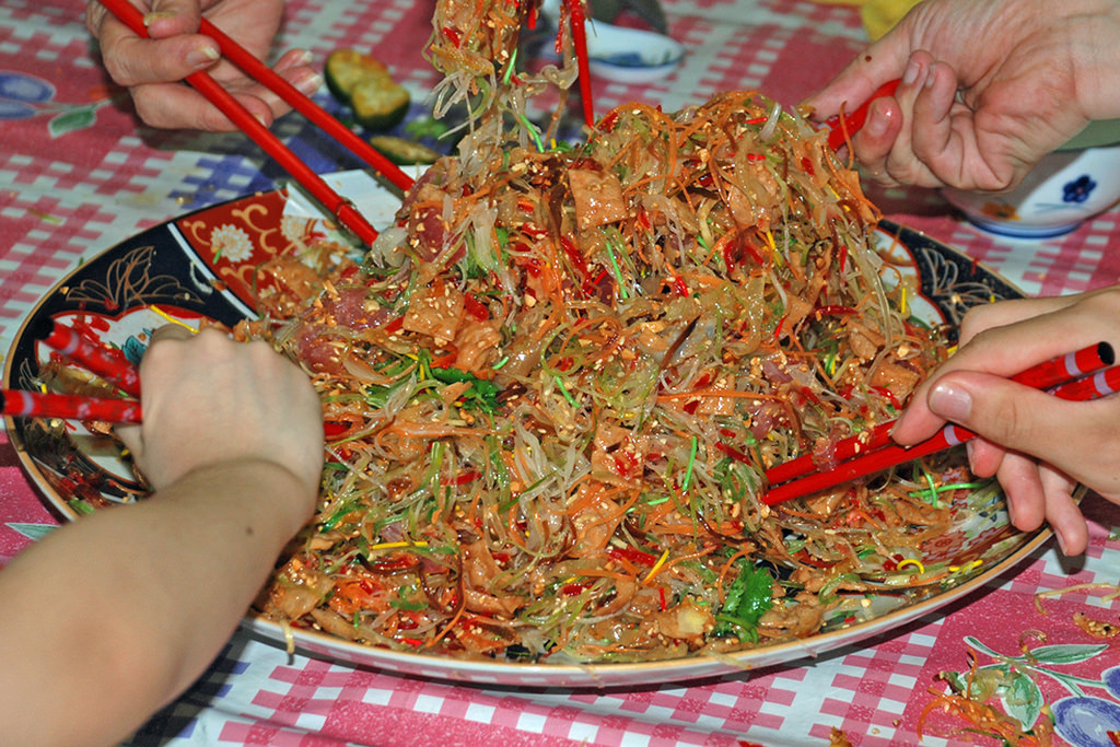 以前,大家会在正月初七捞鱼生,但是现在,只要过年家人朋友团聚,年前年后皆可捞起来。