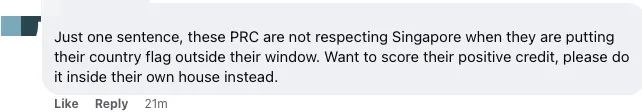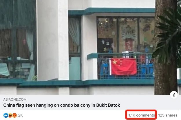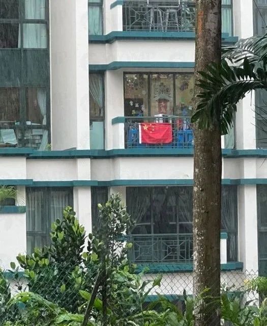 新加坡有人在自己家的阳台上挂中国国旗!
