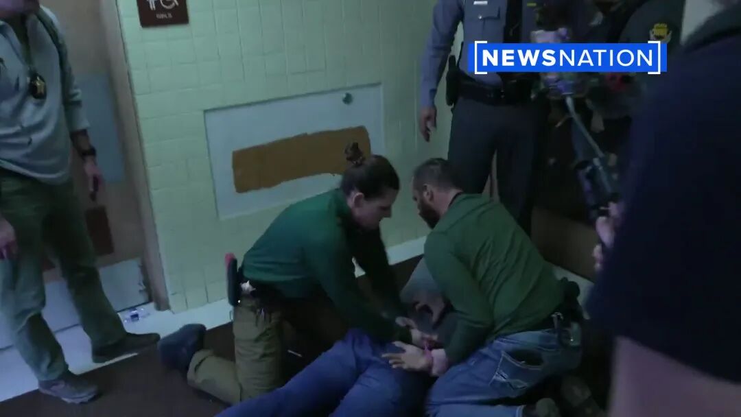 兰伯特被美国警方制服并带离现场的画面