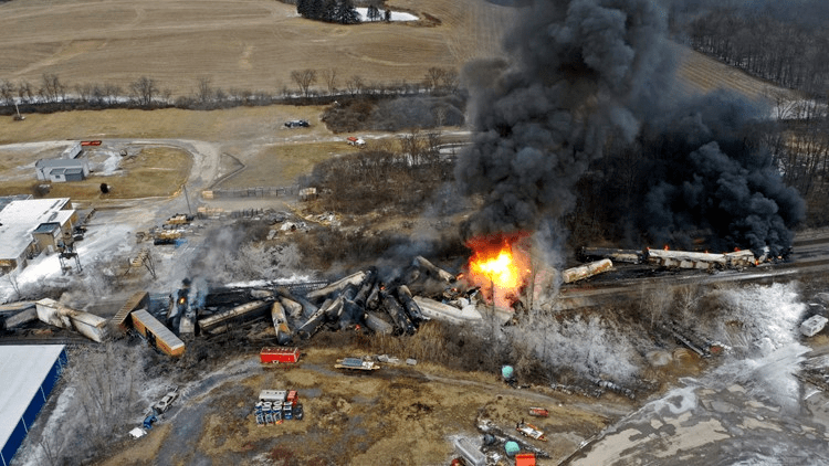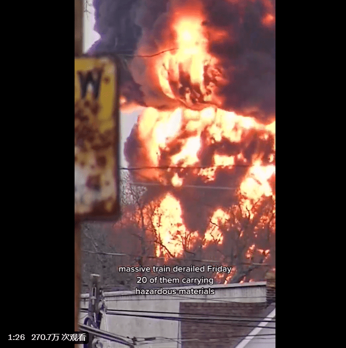 这两天,外媒公布了不少现场照片。据悉,这起事故发生在美国俄亥俄州东部邻近宾夕法尼亚州的小镇东巴勒斯坦城。