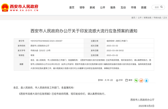 就在要懈怠的时候,西安市官网突然在发布《西安市流感大流行应急预案》,并细化了应急响应措施。