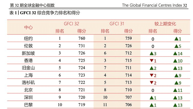 去年9月,国家高端智库中国(深圳)综合开发研究院与英国智库Z/Yen集团在中国深圳和英国伦敦联合发布“第32期全球金融中心指数报告(GFCI 32)”显示:新加坡超越中国香港成为了第三大金融中心,排名第一二的分别是纽约、伦敦。