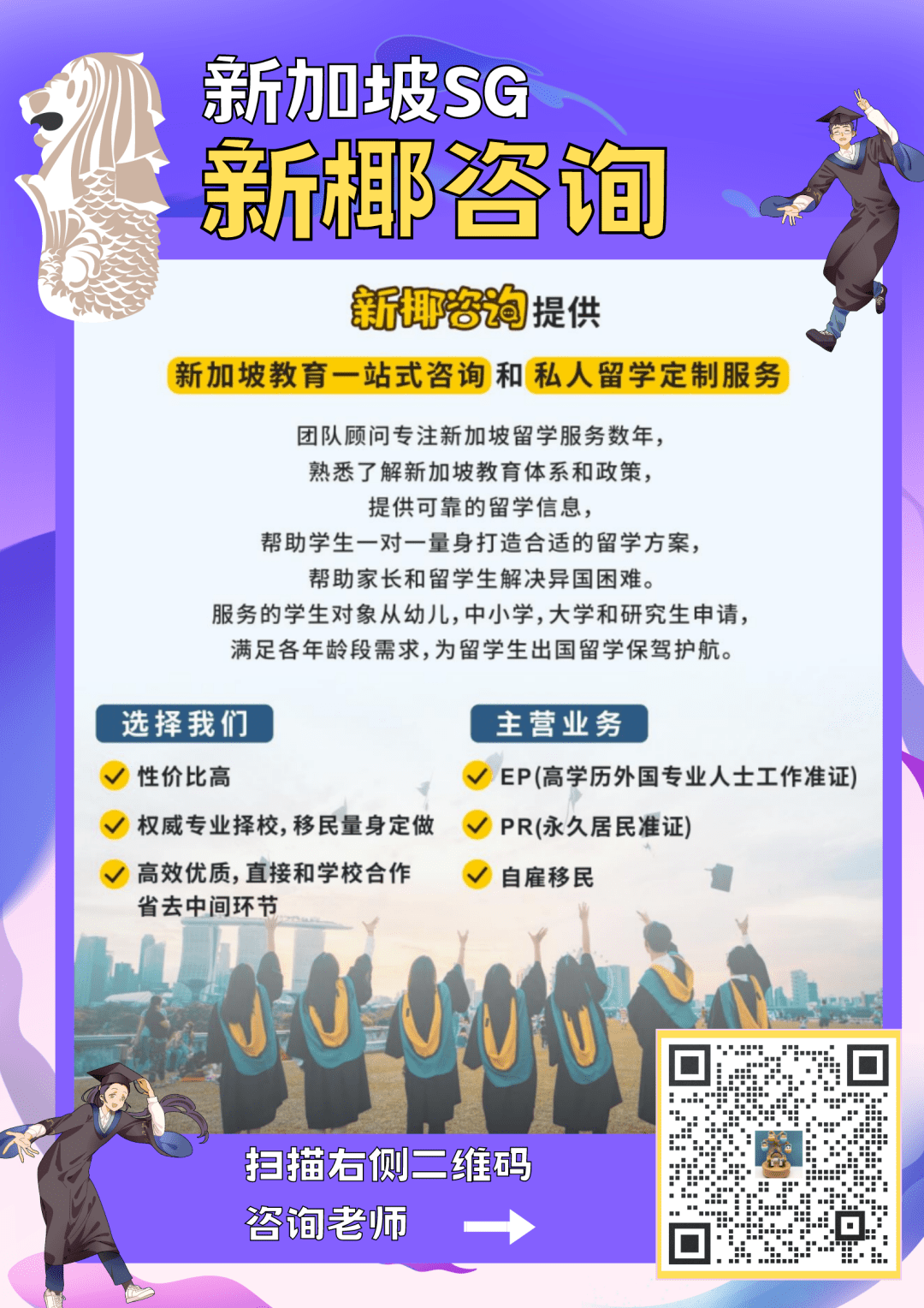 如果想让自家娃接受更好教育,想让娃来新加坡留学的,赶紧扫下方二维码找新椰咨询噢