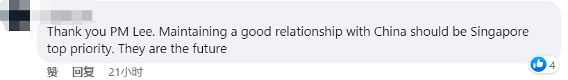 “谢谢李显龙总理。与中国保持良好关系是新加坡的首要任务,他们(中国)就是未来”