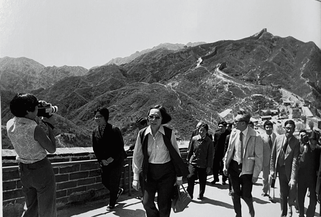 李光耀女儿李玮玲(左)记录下了李光耀一行人在中国长城的见闻,图源:中国驻福冈总领事馆